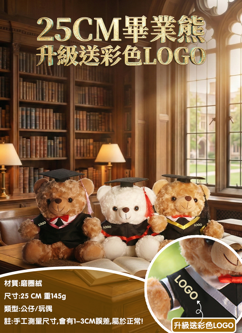 25CM畢業熊 升級送彩色LOGO