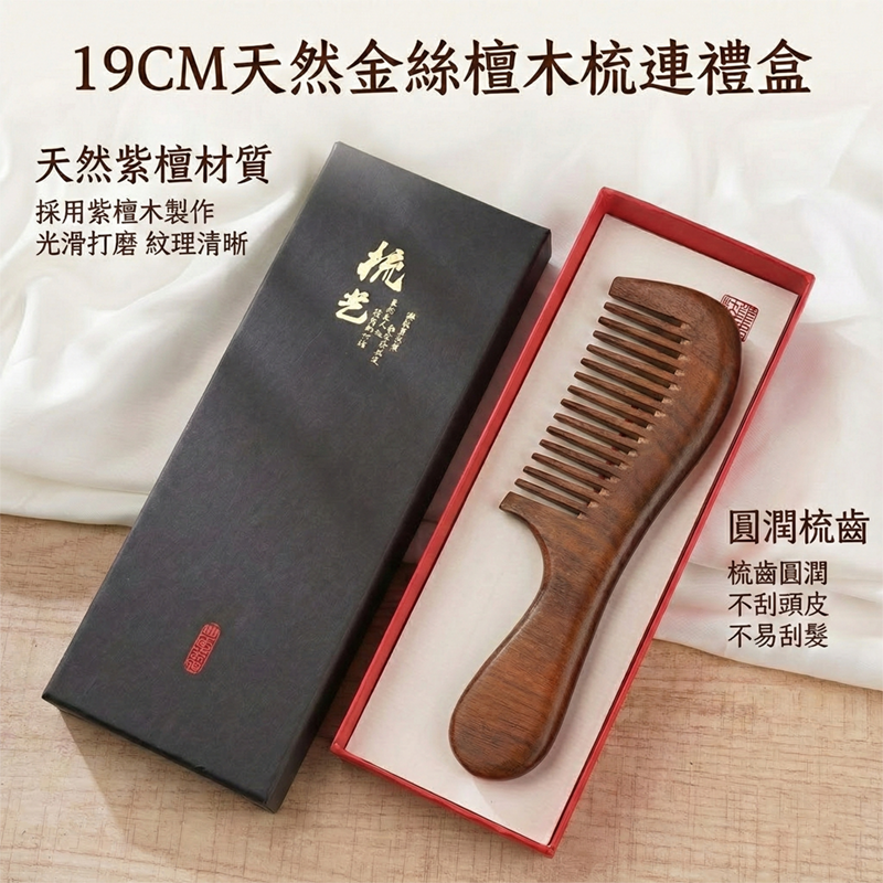 天然金絲檀木梳連禮盒