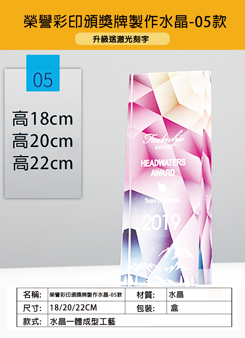 訂製榮譽彩印頒獎牌製作水晶 05款 升級送激光刻字 4567-05