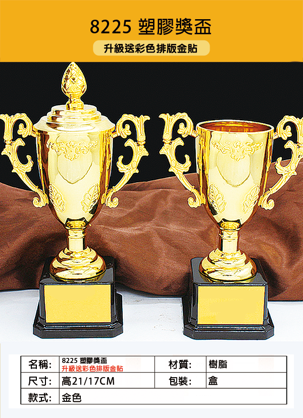 *** 請注意, 這款獎盃重量較輕, 如對手感有要求, 建議另外訂購其他款式獎盃