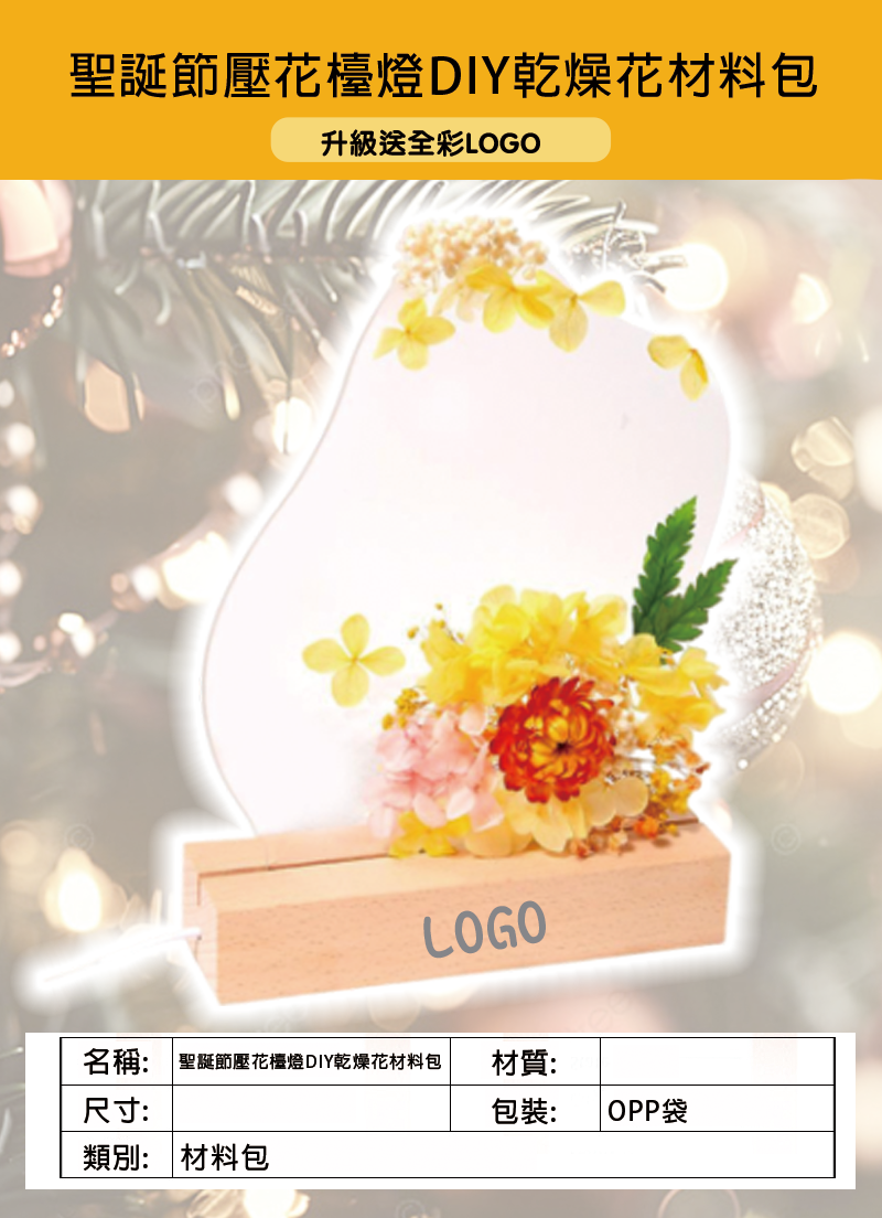 訂製聖誕套裝C 升級送全彩LOGO 包括以下禮物::(訂製聖誕節壓花檯燈DIY乾燥花材料包 升級送全彩LOGO 均可獨立訂購,送4件產品)