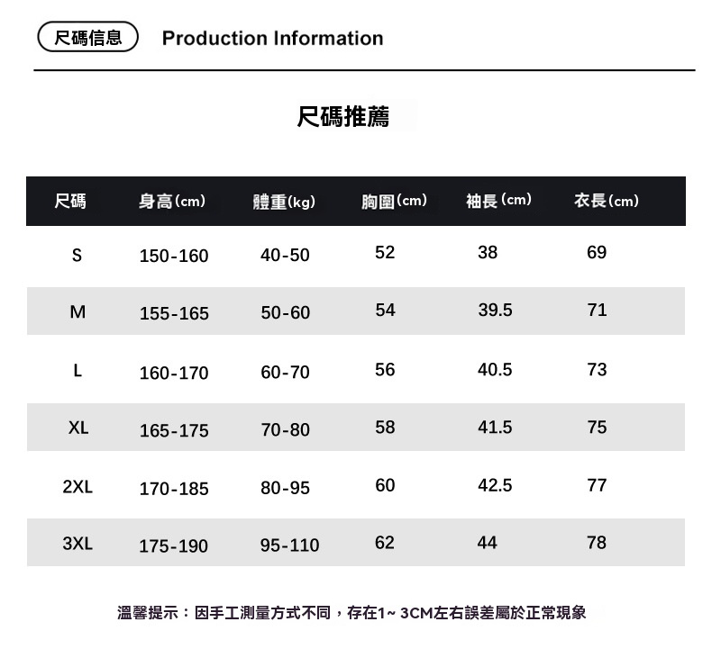 尺寸: S碼至3XL碼